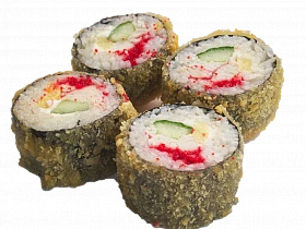Рис, нори, сыр сливочный, имитация крабового мяса, омлет, огурец свежий, икра масаго, кляр, панко