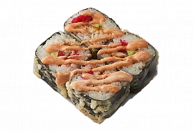 Рис, нори, авокадо, икра масаго, угорь, соус спайси, кляр, панко