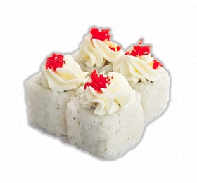 Рис, нори, омлет, огурец св., имитация крабового мяса, майонез японский, сыр сливочный, икра масаго