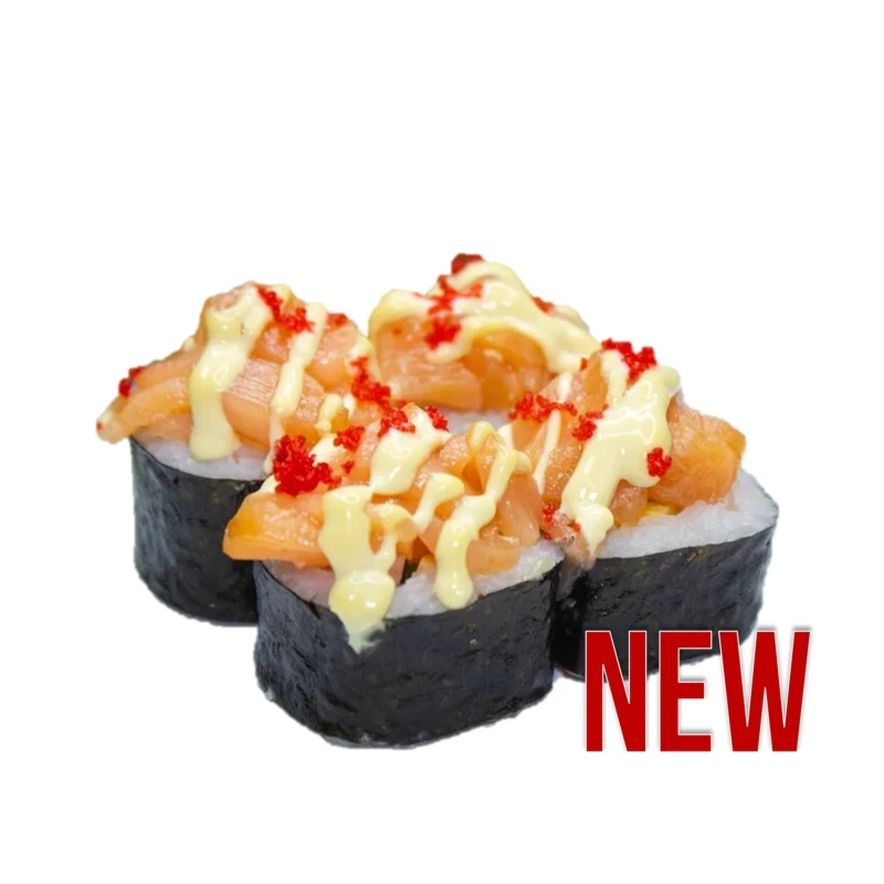 Состав: Рис, нори, лосось, авокадо, огурец свежий, омлет, имитация крабового мяса, икра масаго, соус пикантный