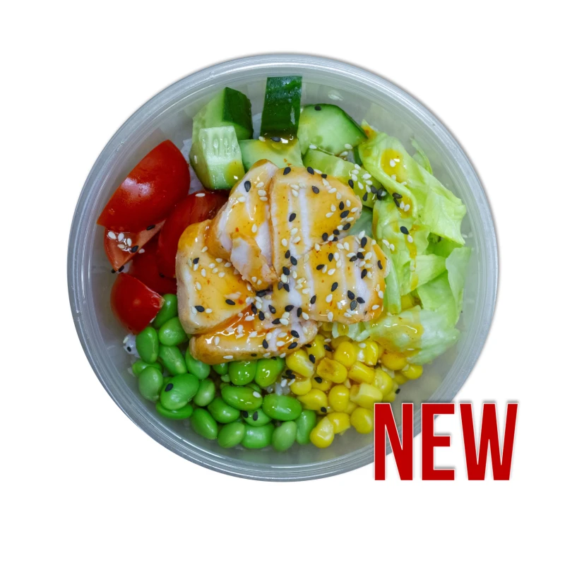 Состав: рис, соевый соус, филе куриное запечённое, айсберг, соус кисло-сладкий, черри, огурец свежий, бобы эдамамэ, кукуруза, нори, кунжут.