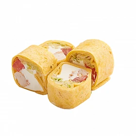 лепешка сырная, курица жареная, сыр Креметте, помидор, айсберг